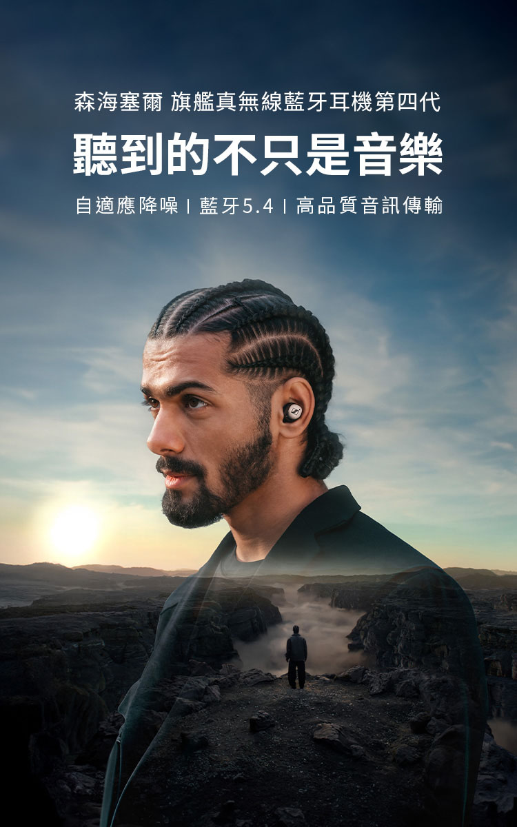 Sennheiser Momentum True Wireless 4 旗艦真無線藍牙耳機第四代 森海塞爾標誌化聲音 自我調整降噪 面向未來的技術 全天舒適 聲音個性化 採用全新電池系統,播放時間長達 30 小時 IP 54 防水防塵 面向未來的技術:支持 Auracast 和 LE 音訊*,暢享藍牙 5.4 相容的最新轉碼器。