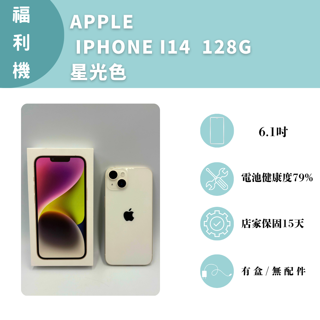 福利機 Apple I14 128G 星光色 電池健康度79% 店家保固15天 ✅ 專業檢測🔍 | 嚴選二手機📱 | 品質保證💯