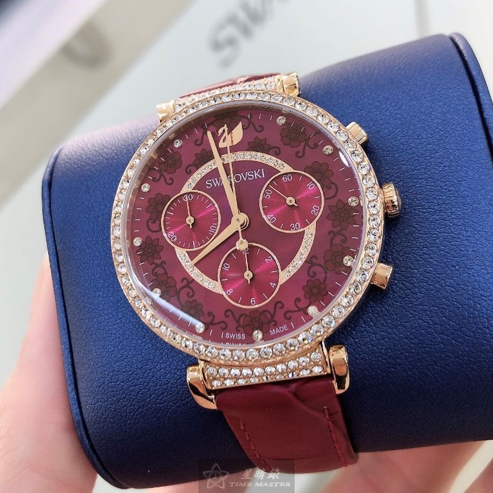 SWAROVSKI手錶,編號SW00037,40mm玫瑰金錶殼,酒紅色錶帶款