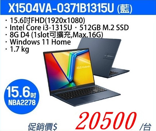 主要搭載Intel I3-1315U處理器、8GB記憶體、512GB M.2固態硬碟、內建高效能Intel® UHD Graphics顯示晶片 ~賣場另有多款筆記型電腦可以選擇~