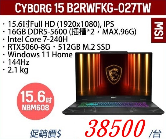 微星 Cyborg 15 B2RWFKG-027TW