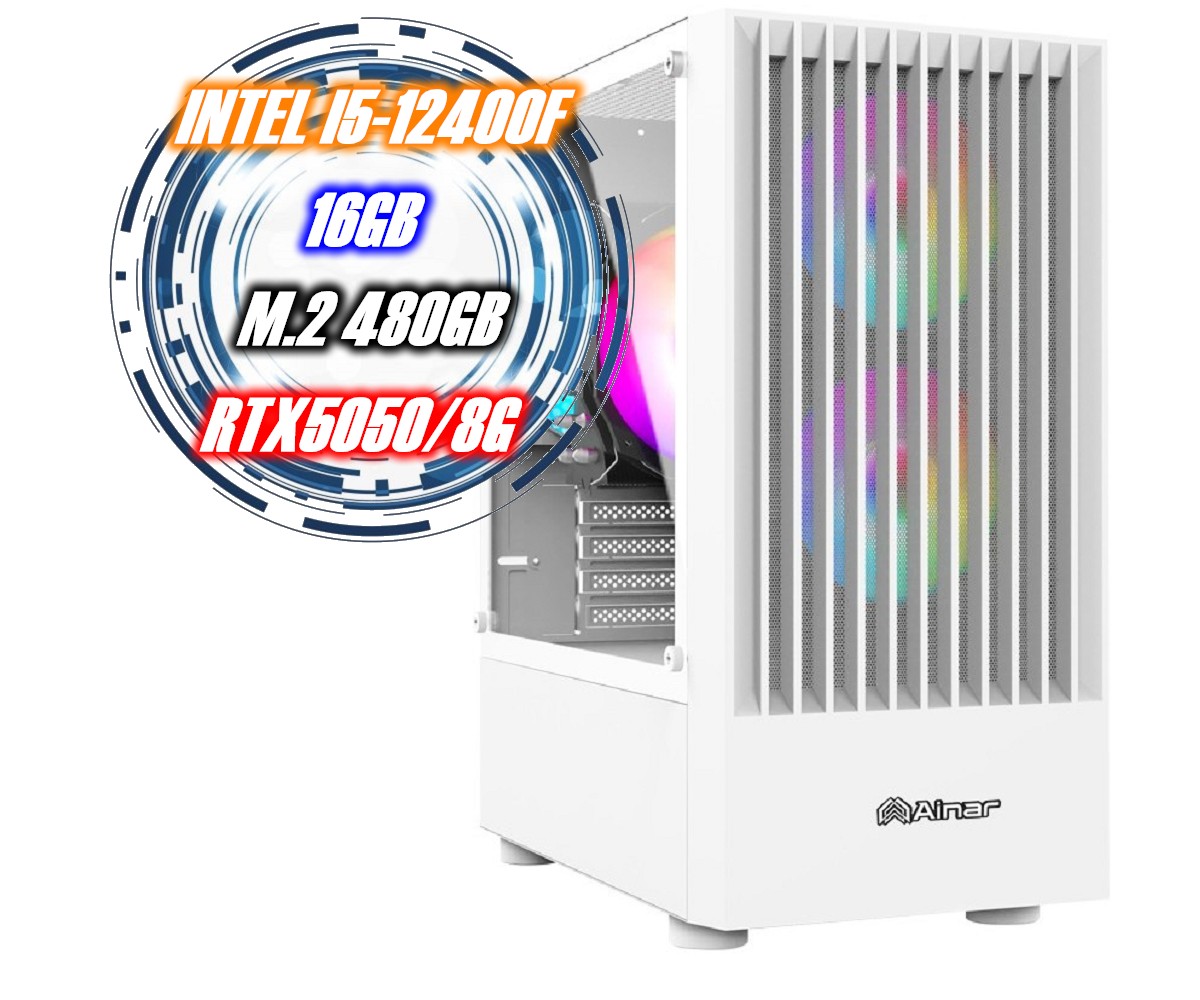 主要搭載Intel I5-12400F處理器、12CM 四導管(雙風)塔扇、16GB記憶體、480GB M.2固態硬碟、RTX5050/8G獨立顯示卡 ~另有多款電腦機殼可以選擇~