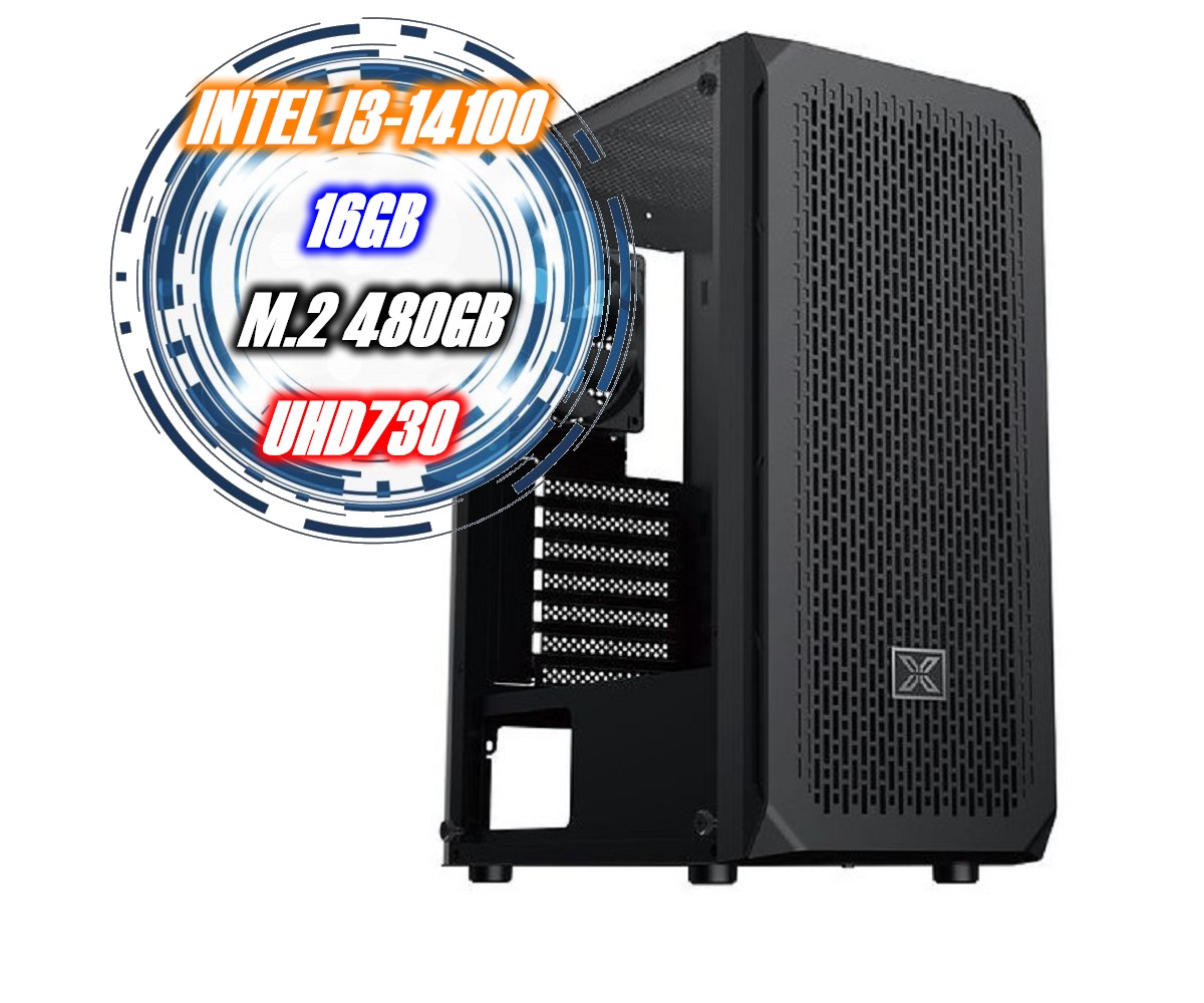 主要搭載Intel I3-14100處理器、12CM 四導管(雙風)塔扇、16GB記憶體、480GB M.2固態硬碟、內建高效能UHD730顯示晶片 ~另有多款電腦機殼可以選擇~