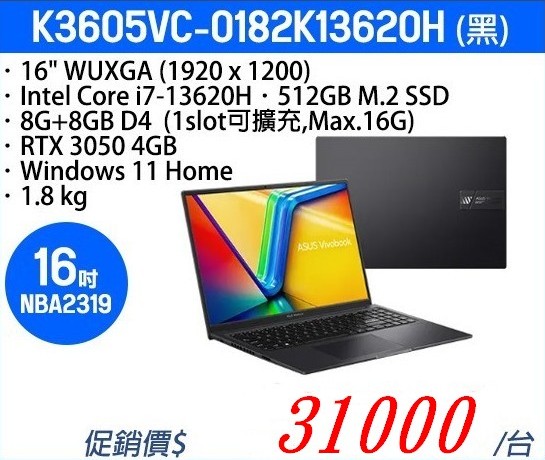 華碩 K3605VC-0182K13620H
