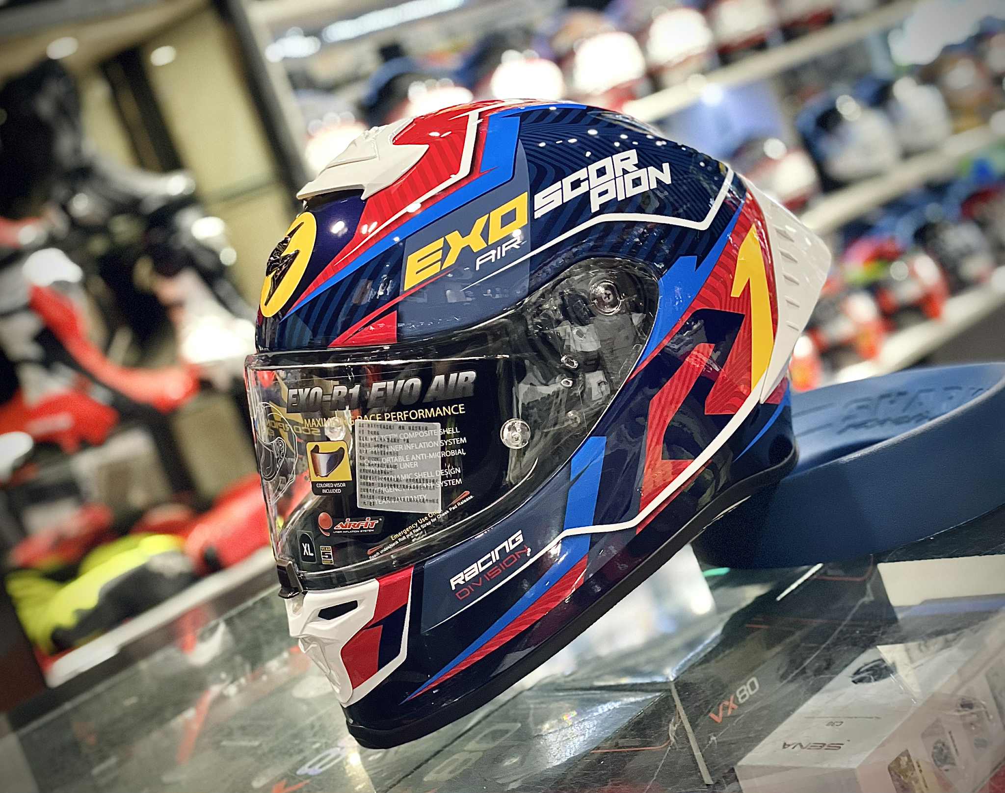 SCORPION EXO R1🌟大鴨尾版本🌟 即贈🗣墨片🗣防霧片🗣鏡片收納袋‼️ - Ultra TCT®輕量化玻璃纖維帽殼💎 🌟Airfit™臉頰充氣系統🌟最佳舒適度💋 超柔軟Kwikwick3®涼感舒適💠抗菌內襯