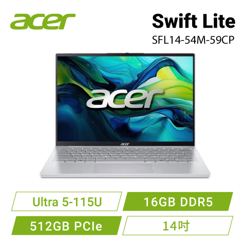 acer lite AL14-52M-54QL 銀 宏碁高效能筆電/i5-1334U/Intel HD Graphics/8G DDR5/512G PCIe/14吋 WUXGA 1920 x 1200/W11/不包含包包及滑鼠