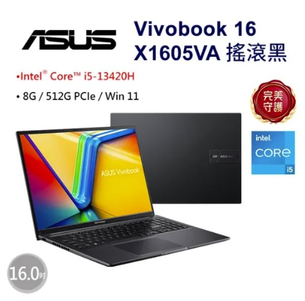 ASUS 華碩Vivobook 16 16吋文書效能筆電黑色(i5-13420H/8GB/512GB/WIN11/X1605VA-0241K13420H)🎈送保護套/滑鼠墊/鍵盤膜🎈