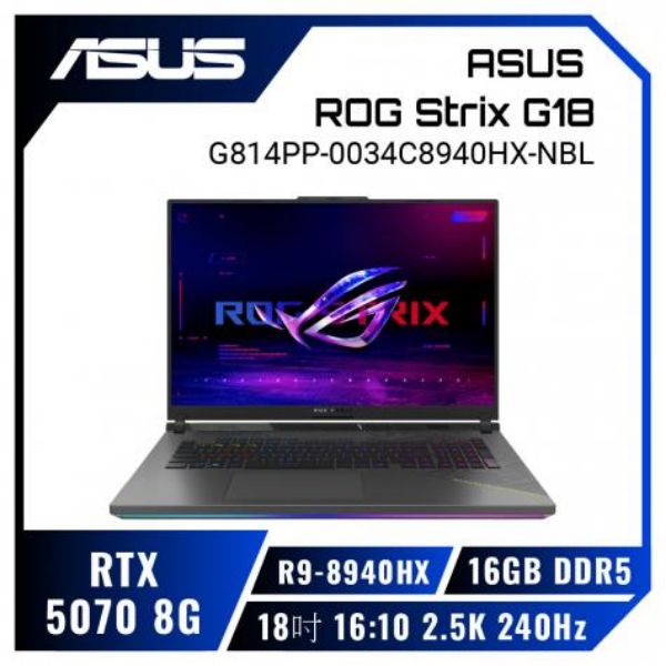 ASUS ROG Strix G16 G614PM-0024C8940HX-NBL 幻潮黑 華碩經典潮流電競筆電/R9-8940HX/RTX5060 8G/16GB DDR5/1TB PCIe/16吋 16:10 2.5K 240Hz/W11/含ROG後背包及電競滑鼠🎈送保護套/滑鼠墊/鍵盤膜🎈
