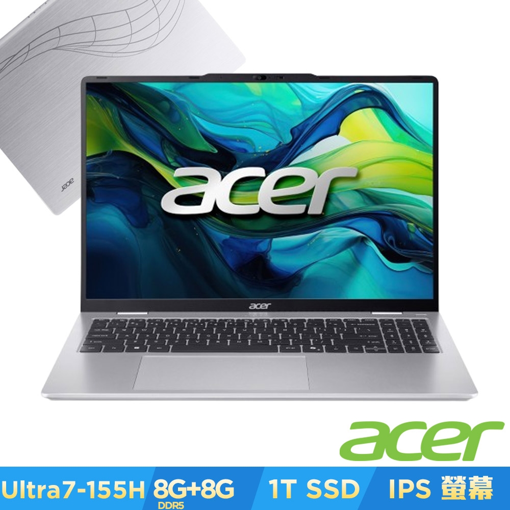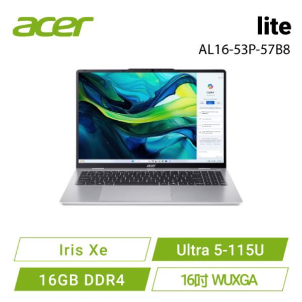 Acer lite AL16-53P-57B8 銀 宏碁高效能筆電/Ultra 5-115U/Iris Xe/16G DDR5/512G PCIe/16吋 WUXGA 1920x1200/W11🎈送保護套/滑鼠墊/鍵盤膜🎈