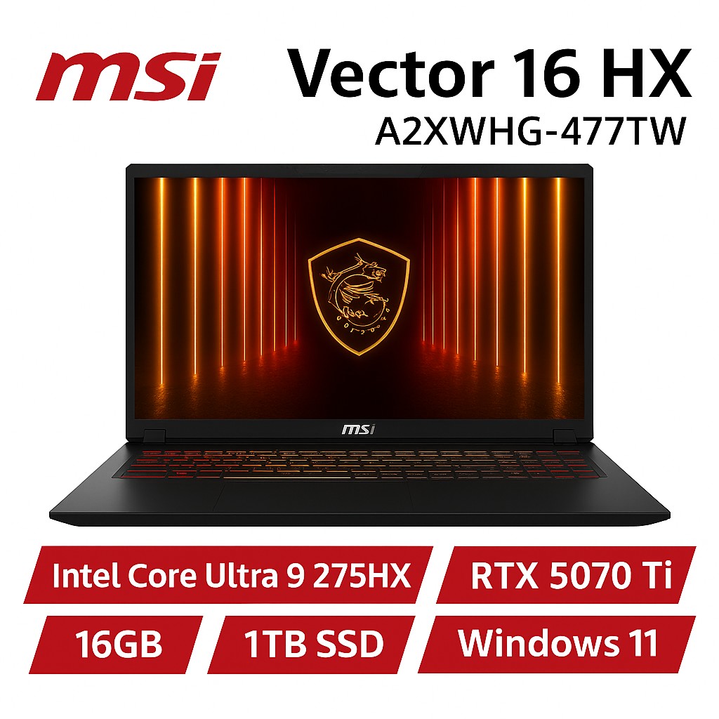 MSI 微星 Vector 16 HX A2XWIG-014TW (Intel Core Ultra 9 275HX/16G/RTX5080-16G/1T SSD/W11/QHD+/240Hz/16) 客製化AI電競筆電