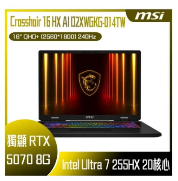 ⭐️MSI Crosshair 16 HX AI D2XWFKG-024TW 微星超滿血高效電競筆電/Ultra 7-255HX/RTX5060 8G/16GB DDR5/1TB PCIe/16吋 16:10 QHD+ 240Hz/W11/RGB背光電競鍵盤⭐️