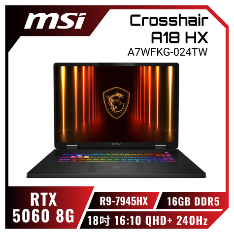 18吋 2.5K+240Hz 面板 Ryzen™ 9 8940HX + 強悍效能 RTX 5070