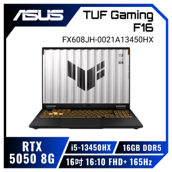 ⭐️ASUS TUF Gaming F16 FX608JH-0021A13450HX 御鐵灰 華碩13代軍規電競筆電/i5-13450HX/RTX5050 8G/16GB DDR5/512GB PCIe/16吋 16:10 FHD+ 165Hz/W11/含TUF電競滑鼠⭐️