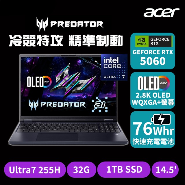 搭載 AMD Ryzen™ AI 7 350 處理器 搭載 GeForce RTX™ 5060 筆記型電腦 GPU 8GB GDDR7 16吋QHD+ (2560x1600), 240Hz更新率, 100% DCI-P3色域, IPS等級面板