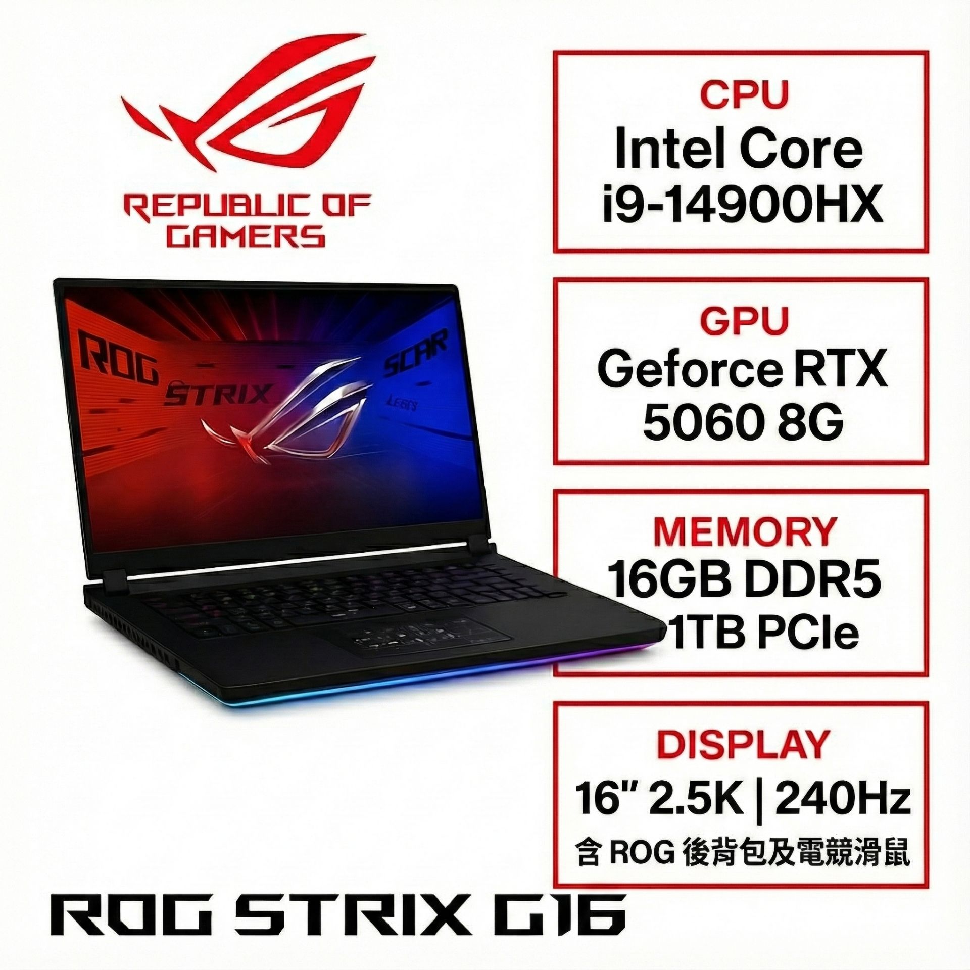 ⭐️ASUS ROG 華碩Strix SCAR 16 16吋電競筆電黑色(Ultra 9 275HX/32G/1TB/RTX 5070 Ti-12G/W11/G635LR-0031A275HX-NBLM)⭐️