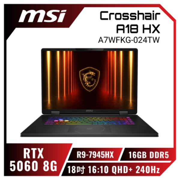 NVIDIA® GeForce RTX™ 5060 8GB GDDR7 (具備MUX獨顯直連) AMD Ryzen™ 7 260 Processor 3.8GHz 18-inch / FHD+ 16:10 (1920 x 1200, WUXGA) / 144Hz