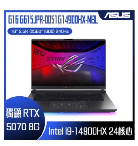 ⭐️ASUS ROG Strix G16 G615JPR-0051G14900HX-NBL 電光綠 華碩旗艦滿血版電競筆電/i9-14900HX/RTX5070 8G/16GB DDR5/1TB PCIe/16吋 16:10 2.5K 240Hz/W11⭐️