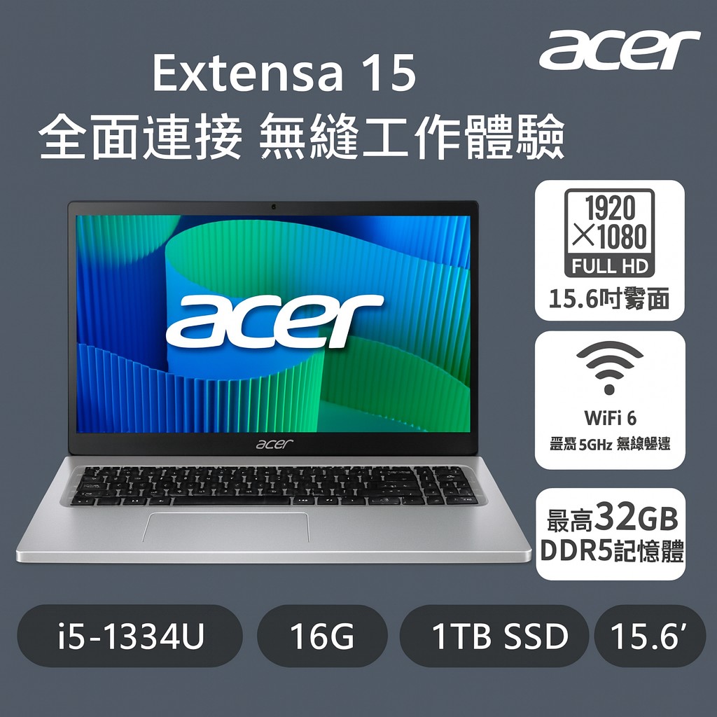新機上市 16吋大尺寸螢幕 可擴充記憶體 180度攤平 具Copilot Key 處理器:Intel Core i3-1315U 處理器 16吋 WUXGA 1920 x 1200 液晶螢幕 超便攜的筆電,有著18.9mm薄型機身,重量僅1.7kg