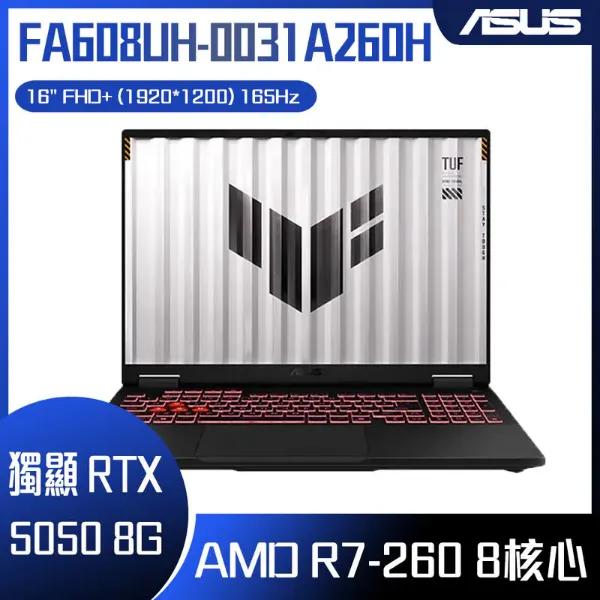 ⭐️ASUS TUF Gaming A18 FA808UH-0021A260H 御鐵灰 華碩薄邊框軍規電競AI筆電/Ryzen 7 260/RTX5050 8G/16GB DDR5/512GB PCIe/18吋 16:10 FHD+ 144Hz/W11/含TUF電競滑鼠⭐️