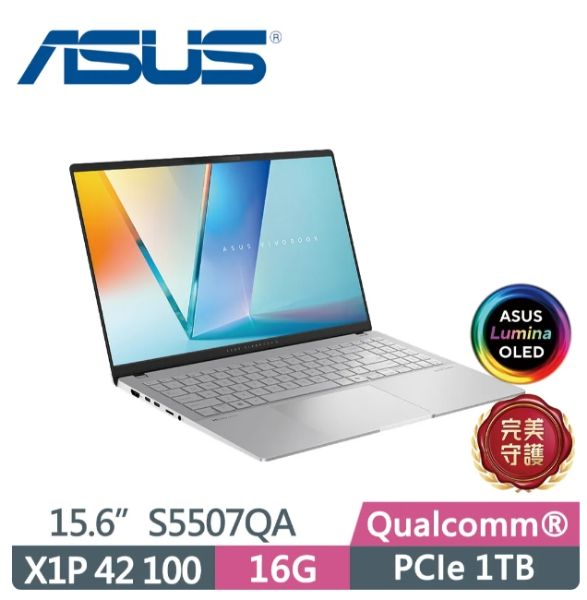 Snapdragon® X Plus X1P 42 100 Processor 15.6吋 3K (2880 x 1620) OLED 16:9 aspect ratio, 120Hz 16GB LPDDR5X on board