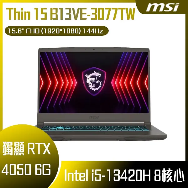 MSI 微星Thin 15.6吋 B13UC-2017TW 電競筆電灰色(i5-13420H/8GB/512GB/RTX 3050-4G/WIN11/)🎈送保護套/滑鼠墊/鍵盤膜🎈