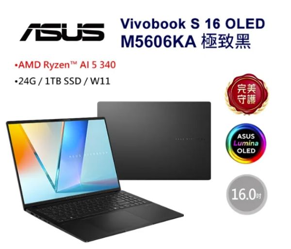 Vivobook S 14 OLED 14吋AI筆電黑色(AMD Ryzen AI 9 HX 370/32GB/1TB/WIN11/M5406WA-0038KHX370)🎈送保護套/滑鼠墊/鍵盤膜🎈