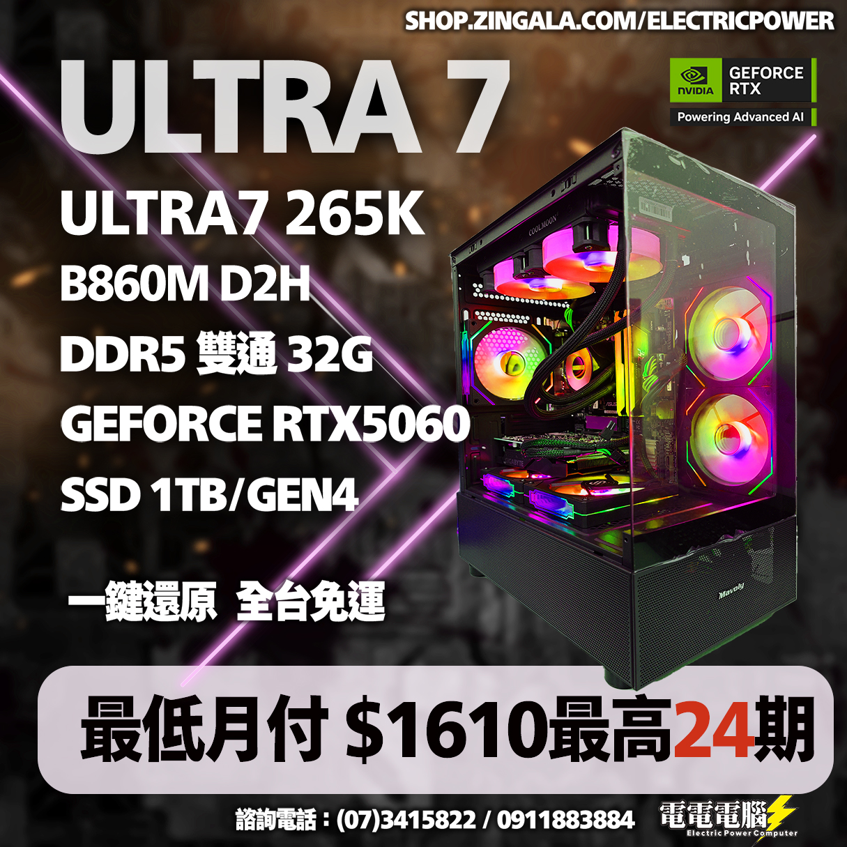 🔥 電競配備隨你挑,價格公開透明 👉 看商品: https://shop.zingala.com/electricpower 💬 線上詢問: https://lin.ee/NWZCI6l 🧰 專為電競族打造的主機、筆電、螢幕通通有 🚚 急速出貨:下單完成最快當天出貨 🚛 黑貓 or 順豐宅配到你家 🛠️ 全台到府售後收件,維修不出門! 💳 支援所有主流付款/分期方式 ➡ 銀角分期、BOBO PAY、月付大人分期 ➡ 線上信用卡分期 ➡ 線上付款 or 門市現場取貨超方便! 🏠 地址:高雄市左營區重愛路22巷6號 🕒 營業時間:週一至週五 11:00-20:30|週六 11:00-16:00|週日公休 📞 電話:(07)3415822 / 0911883884 📲 官方 LINE:@377fipfn