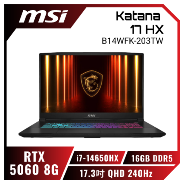 MSI 微星Katana 15 HX 15.6吋 電競筆電黑色(i7-14650HX/16GB/1T/RTX5070-8G/WIN11/B14WGK-647TW)🎈送保護套/滑鼠墊/鍵盤膜🎈