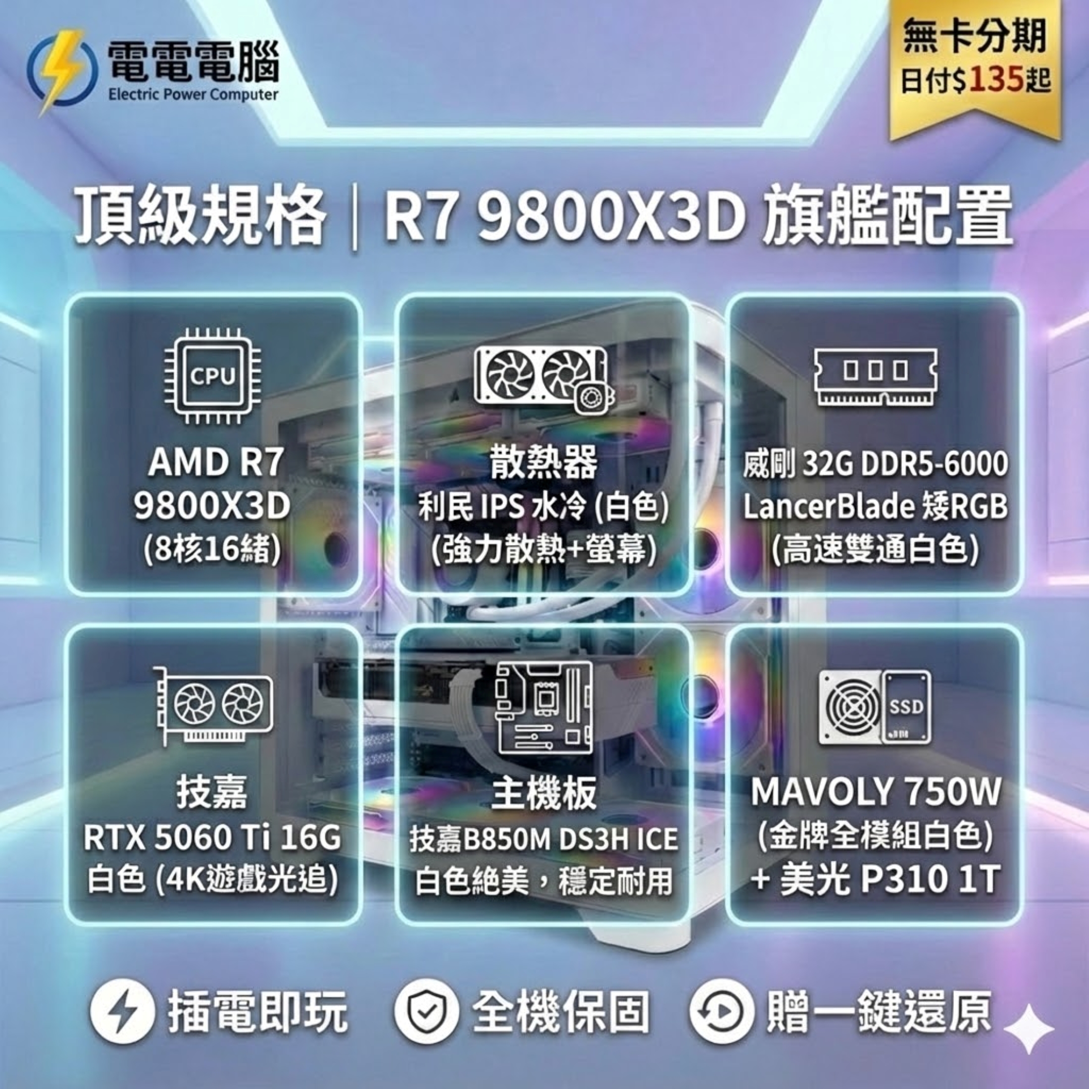 #電電電腦 #客製化電腦 #白色主機 #海景房 #9800X3D #RTX5060Ti #技嘉 #利民水冷 #高雄組電腦 #無卡分期 #免費收送
