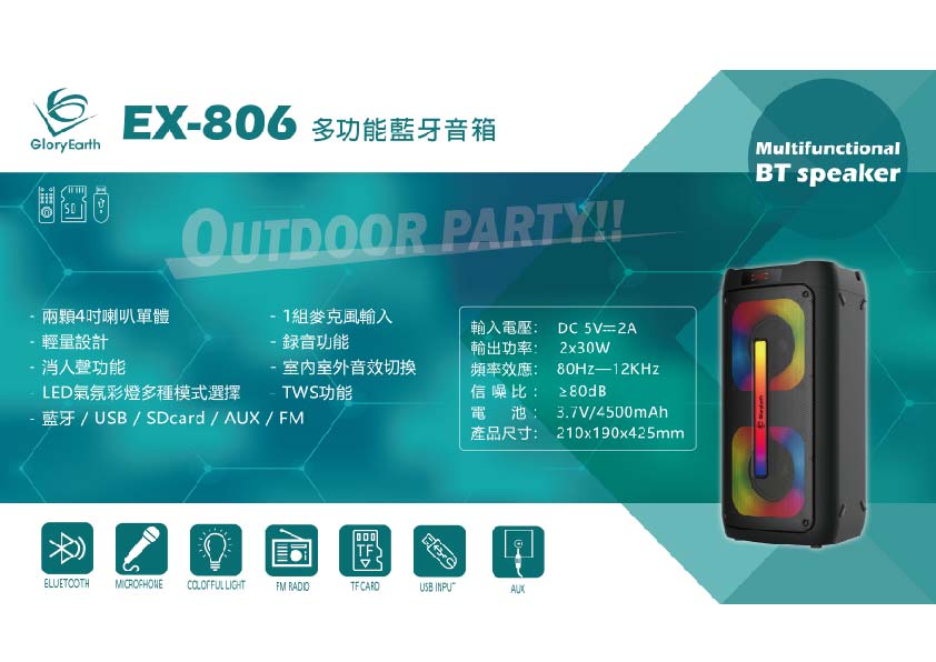 【GLORYEARTH】搖滾BAR,EX-806多功能藍牙音箱