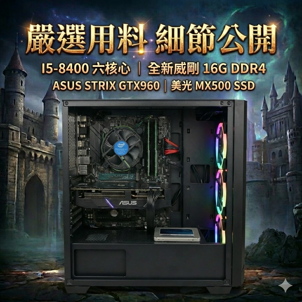 ✅ 經典梟鷹加持:採用 ASUS STRIX GTX960 顯示卡,這張卡對應天堂這類經典線上遊戲或手機模擬器的優化極佳,效能剛好用在刀口上,不浪費預算即享流暢體驗。