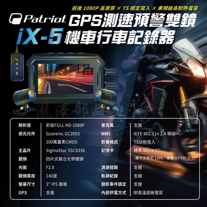 Patriot 愛國者 GPS測速預警機車行車記錄器iX-5 |贈64G記憶卡
