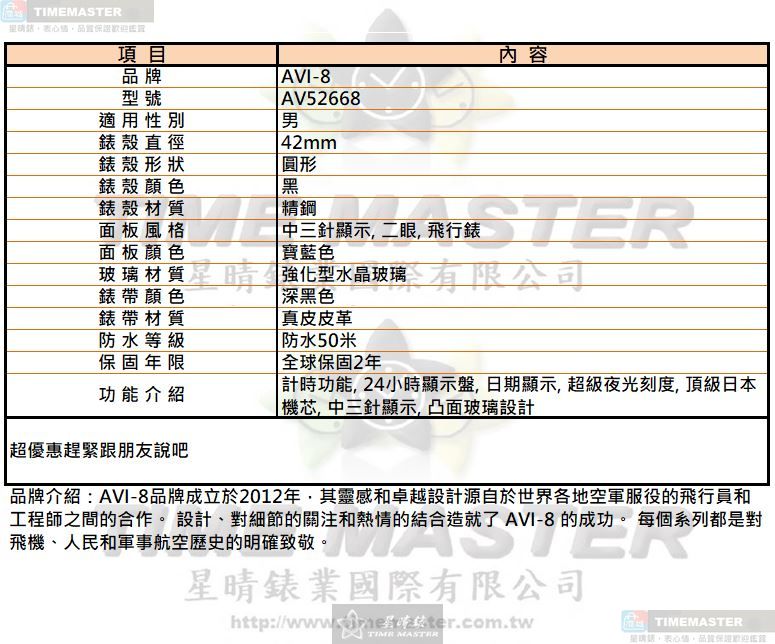 如果你正在尋找一款品質精良、風格穩重、功能齊全的AVI-8男錶,AV52668不誇耀自己最好,卻在每一個細節上盡力做到扎實可靠。
