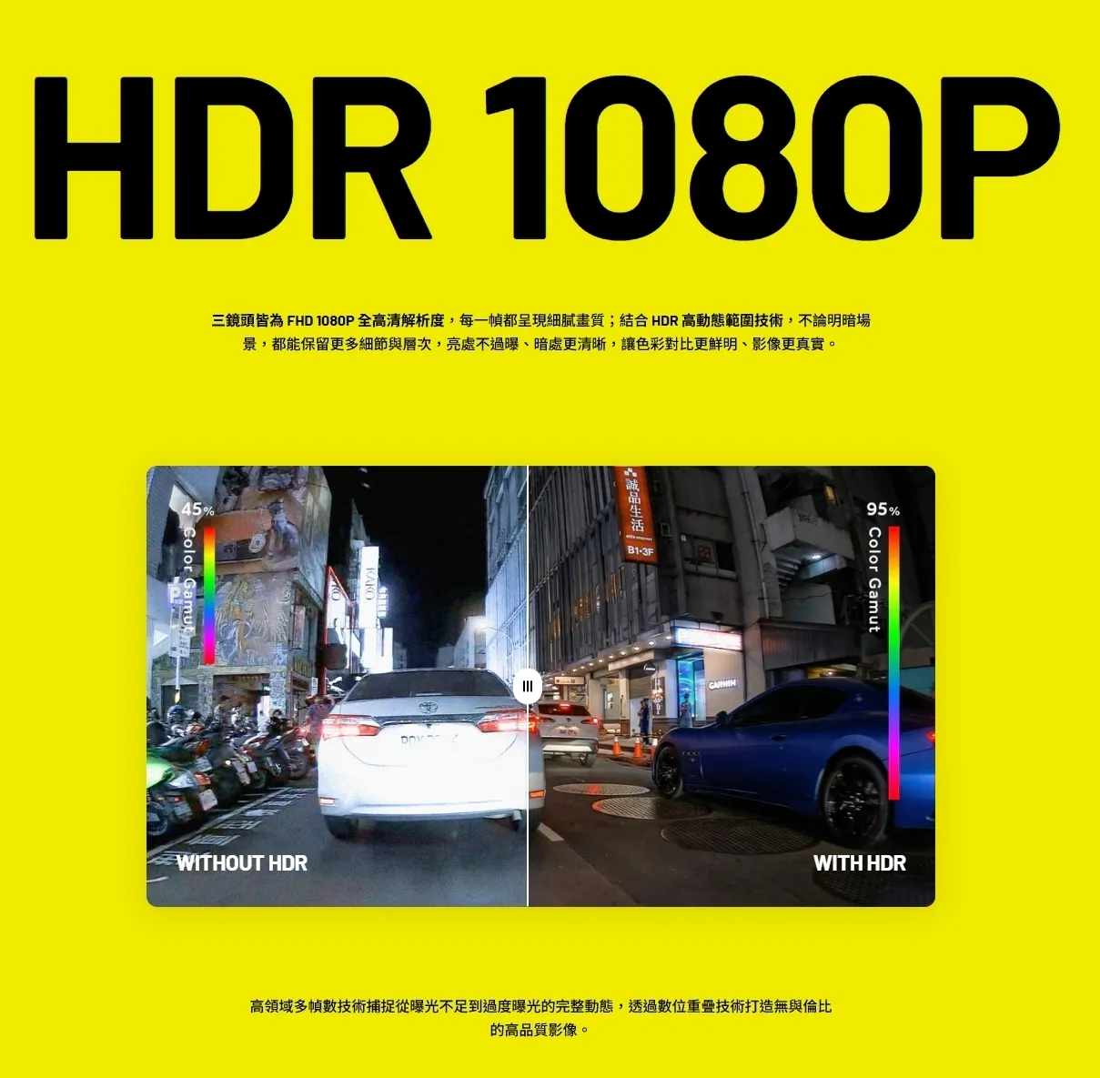 · 前/環視/後鏡頭1080P 30fps HDR