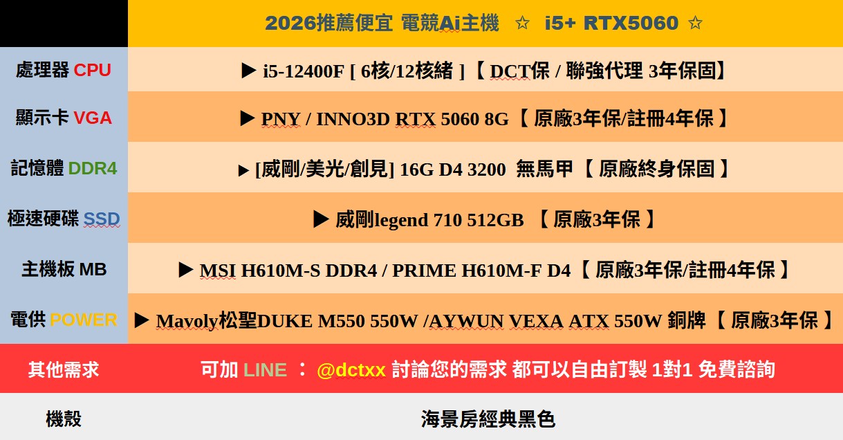 **備註: 因電腦零件汰換很快 會根據情況因缺貨或時關係有可能 更換/升級 同等價值不同廠牌零件