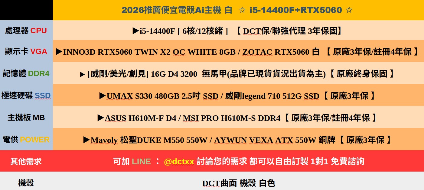 **備註: 因電腦零件汰換很快 會根據情況因缺貨或時關係有可能 更換/升級 同等價值不同廠牌零件