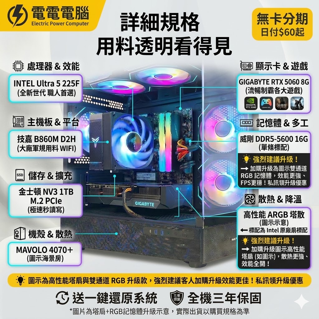 #電電電腦 #高雄組電腦 #Ultra5 #RTX5060 #無卡分期 #電競主機 #高CP值 #買電腦找電電
