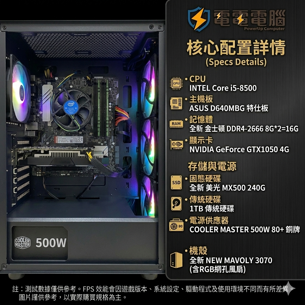 PSU: COOLMASTER 500W 80+ (穩定供電)