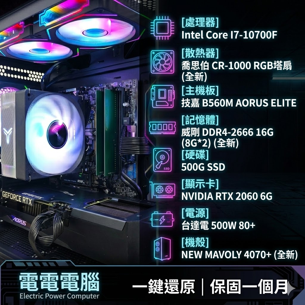 處理器 (CPU): Intel Core I7-10700F,強勁多核心,遊戲與創作皆能駕馭。