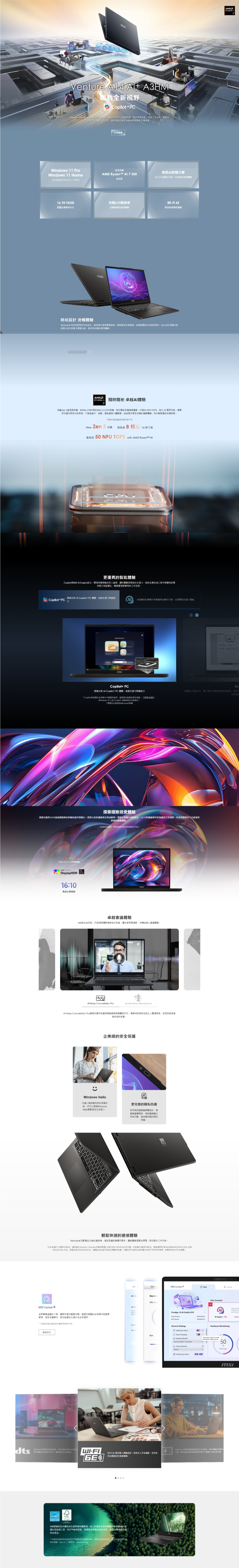 搭載 AMD Ryzen™ AI 5 340 6核/12緒 14吋 2.8K (2880x1800) OLED 120Hz / 100% DCI-P3 獨家微星AI智慧引擎針對使用情境自動切換最佳效能模式 搭載DTS Audio 音效技術