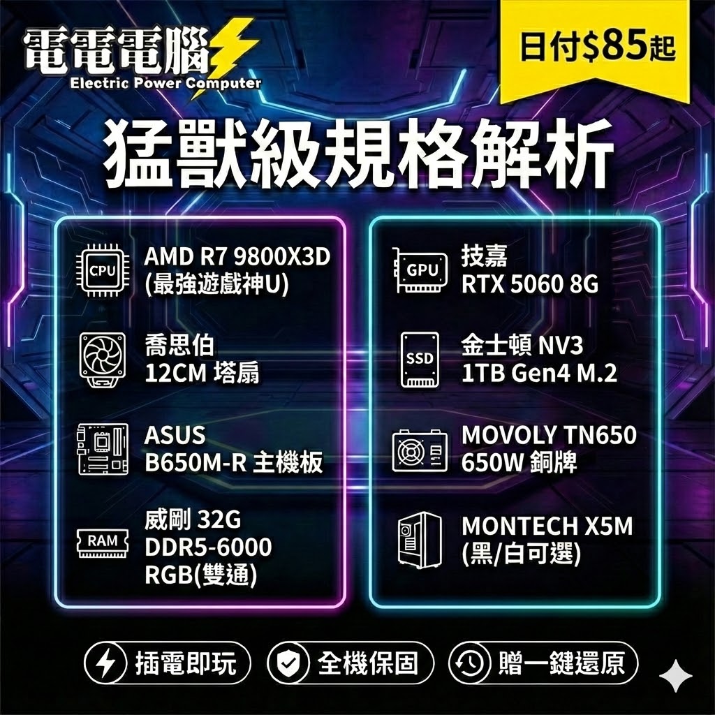 處理器: AMD Ryzen 7 9800X3D (8核16緒 / 最強遊戲U)