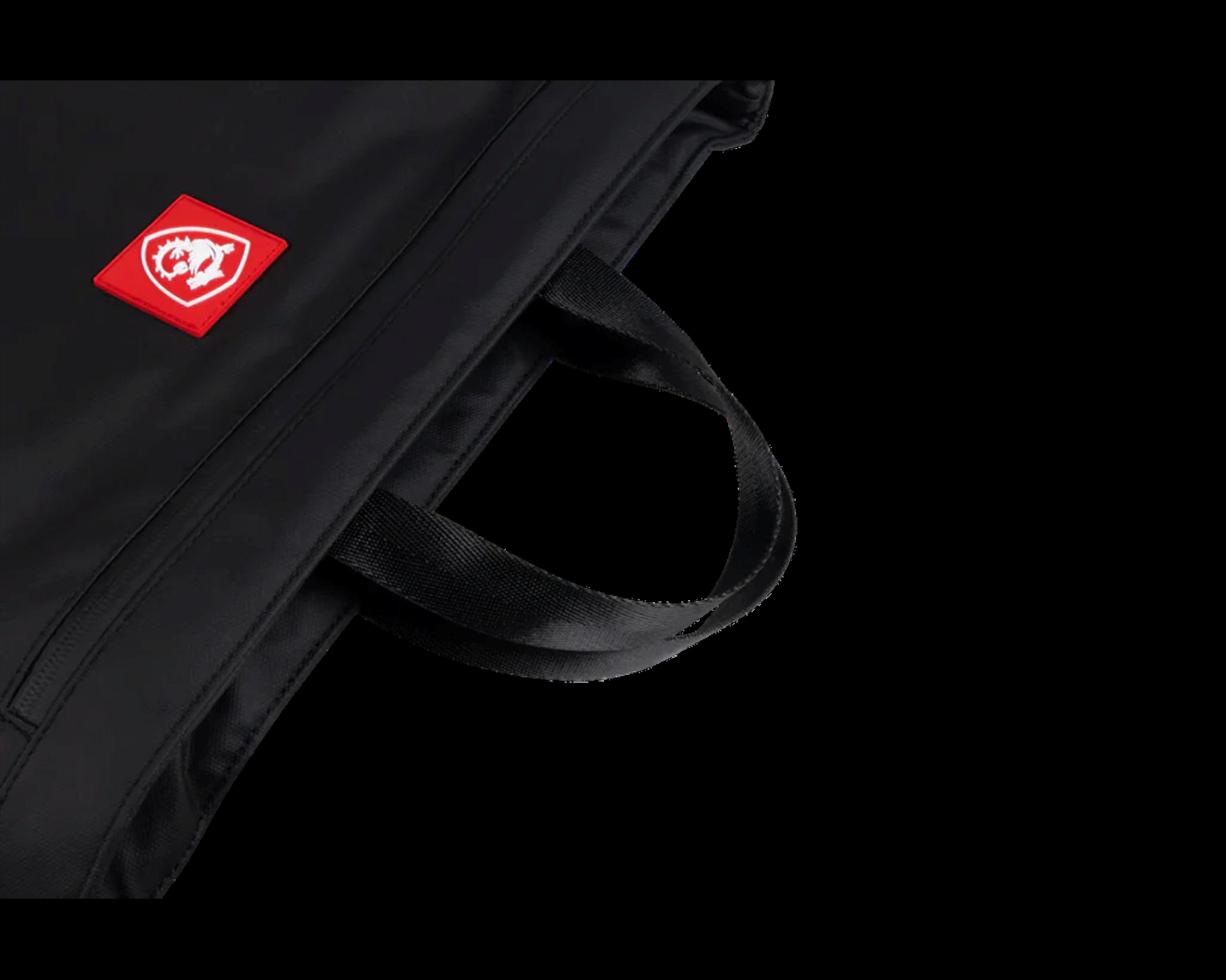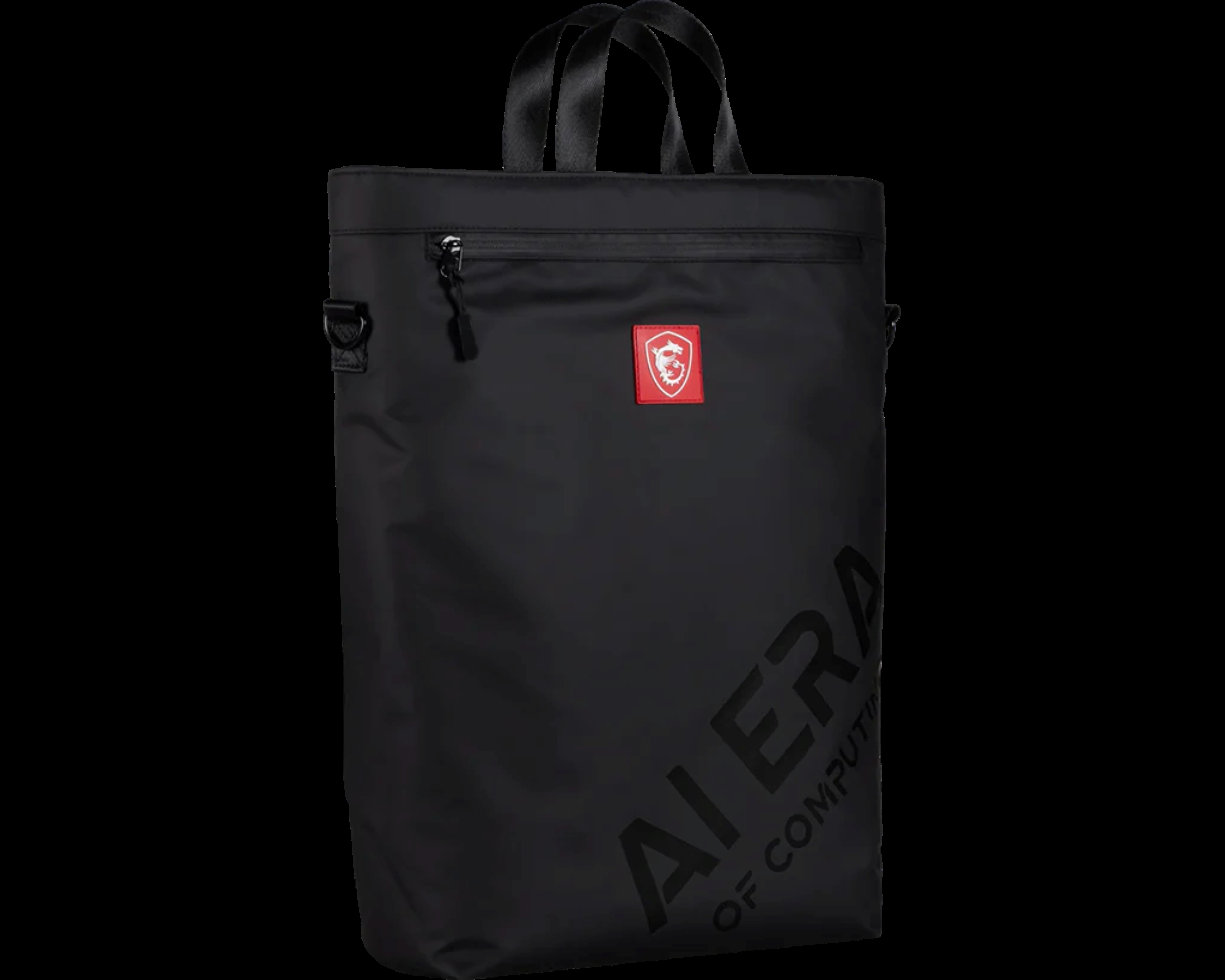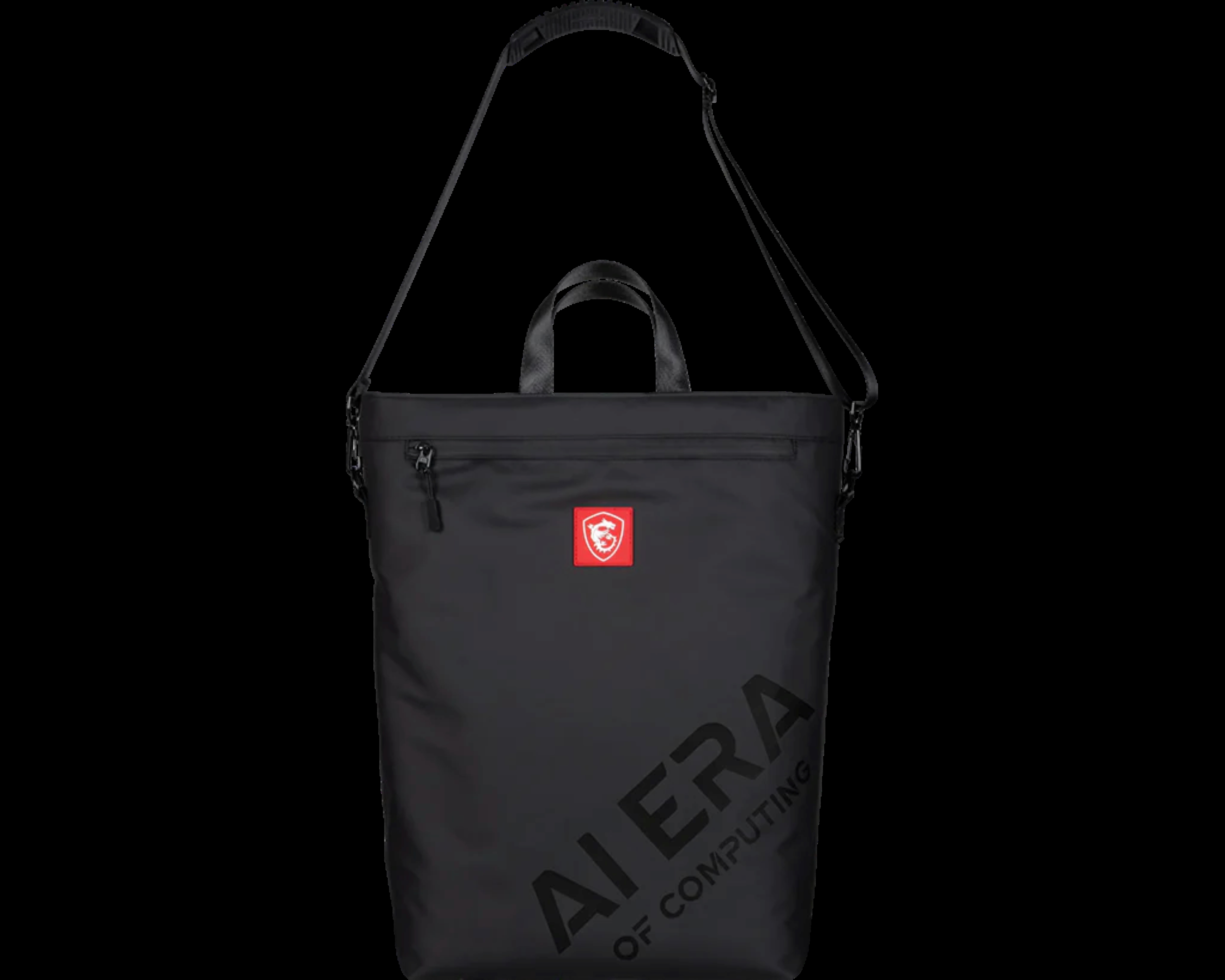✅ AI Era 限量設計:包身印有微星標誌性紅色龍盾 Logo 與大膽的 "AI ERA OF COMPUTING" 黑色亮面字樣,低調中透著不凡質感。