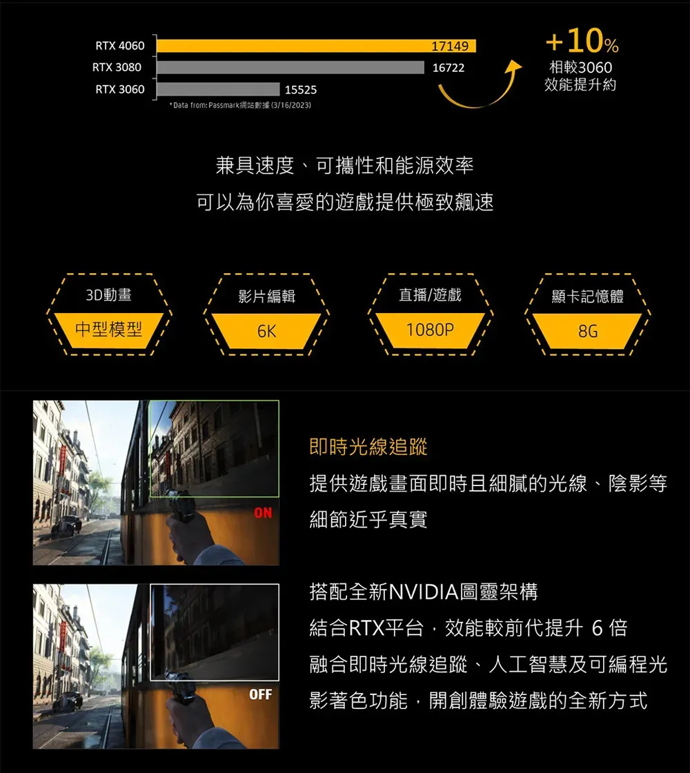 顯示晶片卡型號: Nvidia GeForce RTX4060 8G DDR6 / IntelR IrisR Xe Graphics
