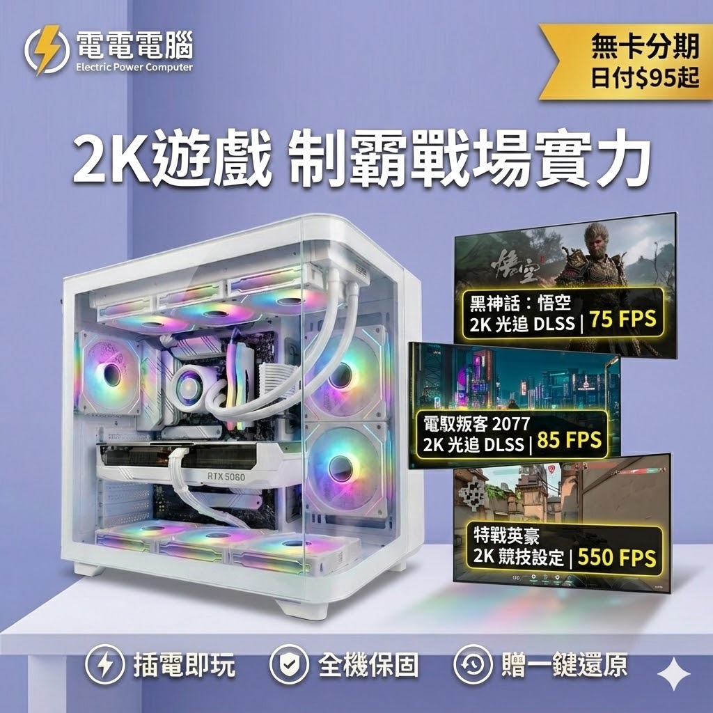 🛡️ 電電電腦 獨家承諾 🔹 全機保固:有問題直接找我們,售後不踢皮球。 🔹 插電即玩:系統、驅動全部幫你灌好,回家插電直接開戰。 🔹 獨家贈送:一鍵還原系統 (中毒、變慢,按一下這顆就復活!)