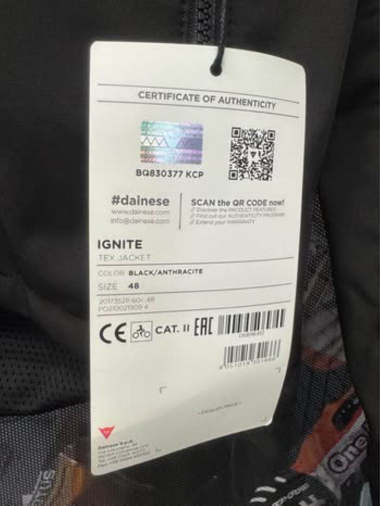 販售商品:Dainese IGNITE TEX JACKET 秋冬防潑水保暖防摔衣