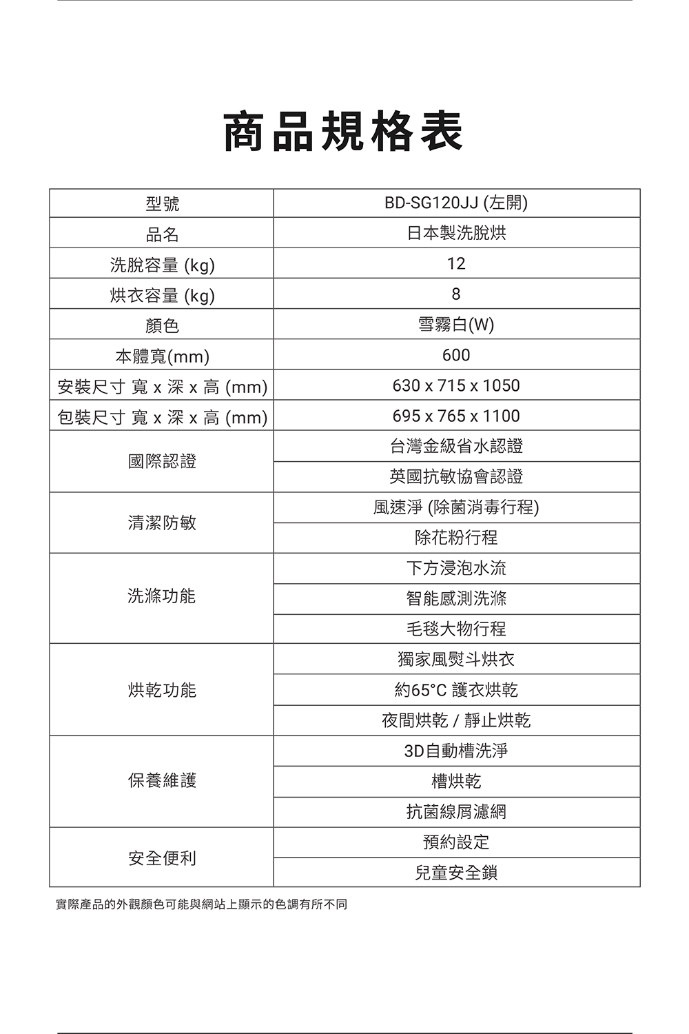 商品型號:BD-SG120JJ