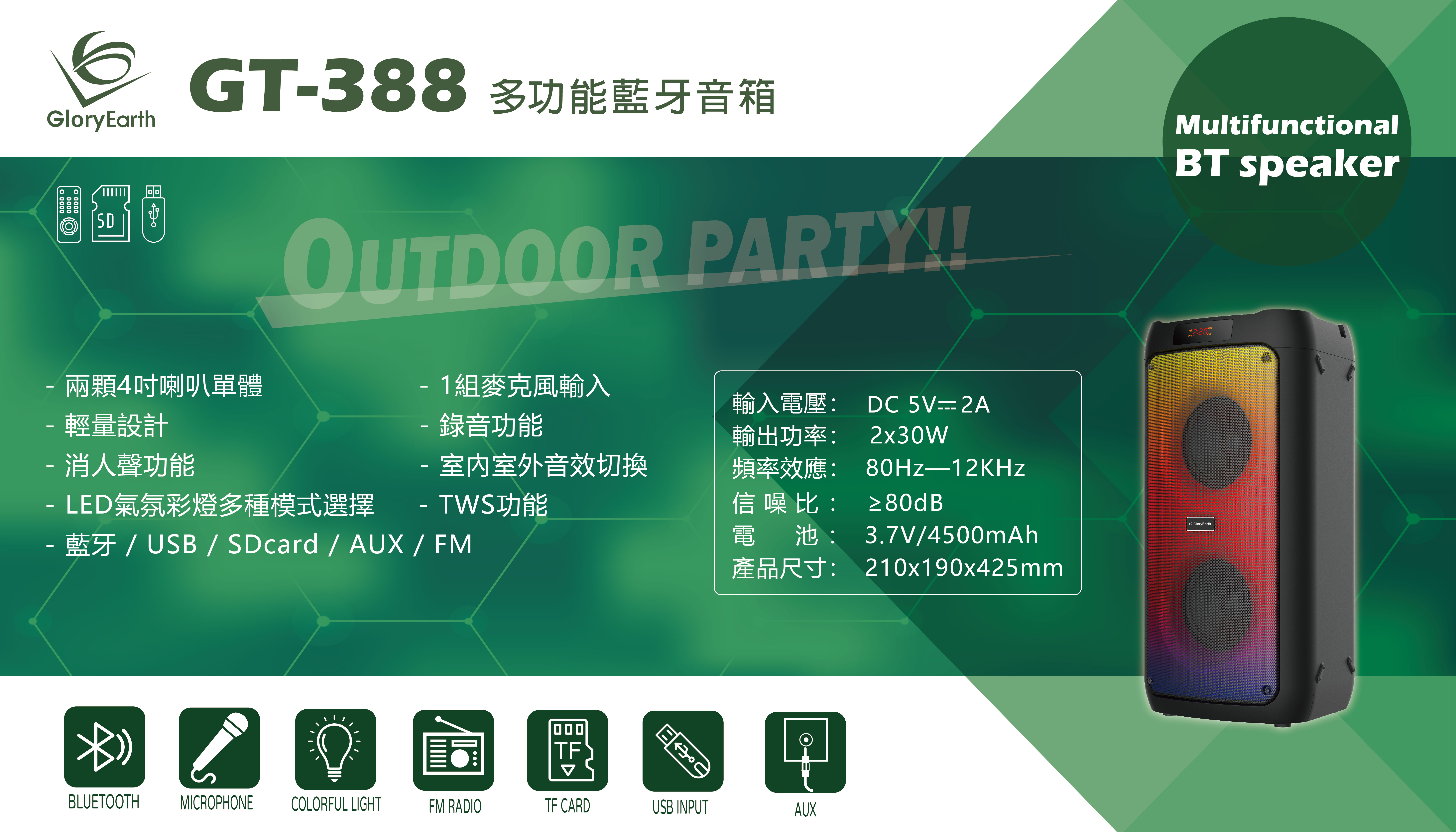 【GLORYEARTH】搖滾BAR,GT-388多功能藍牙音箱