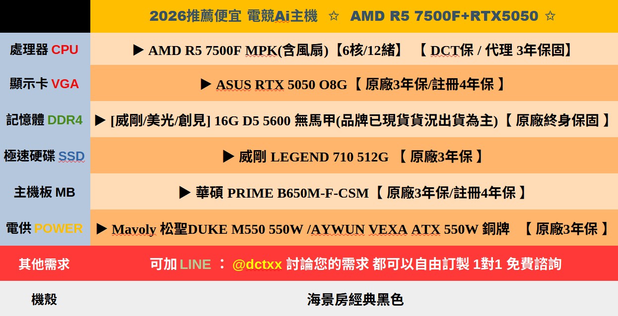 **備註: 因電腦零件汰換很快 會根據情況因缺貨或時關係有可能 更換/升級 同等價值不同廠牌零件
