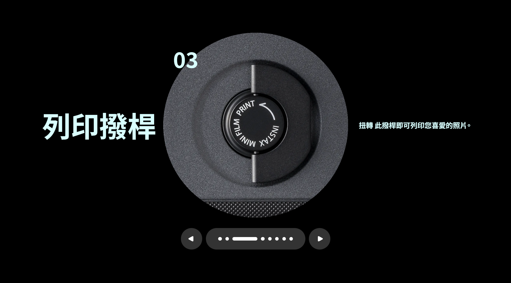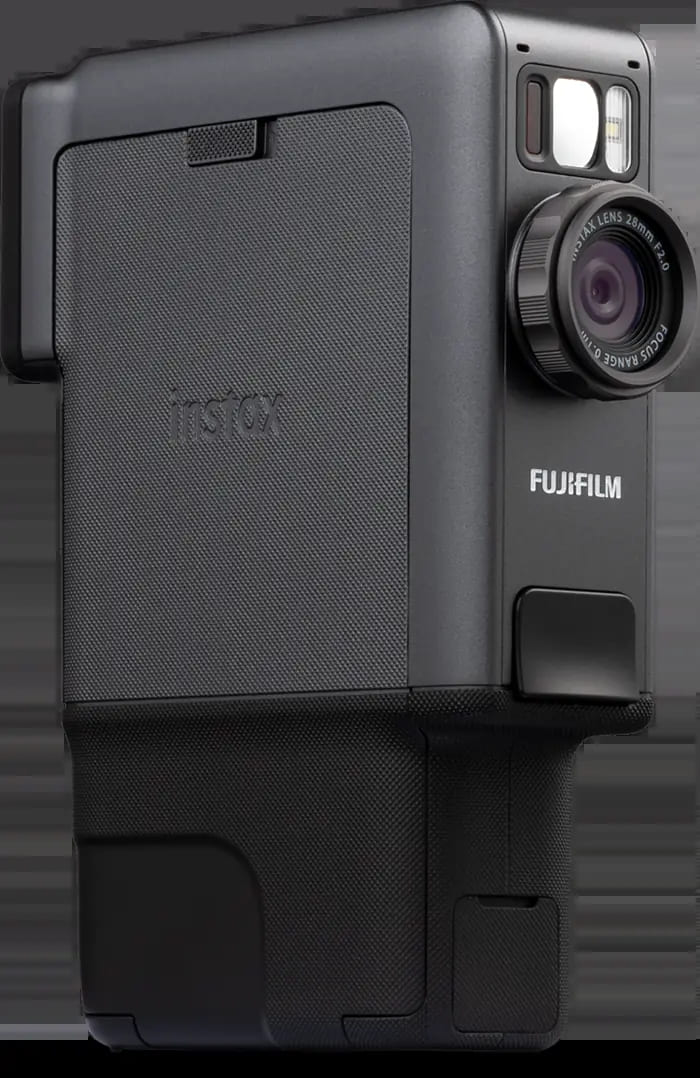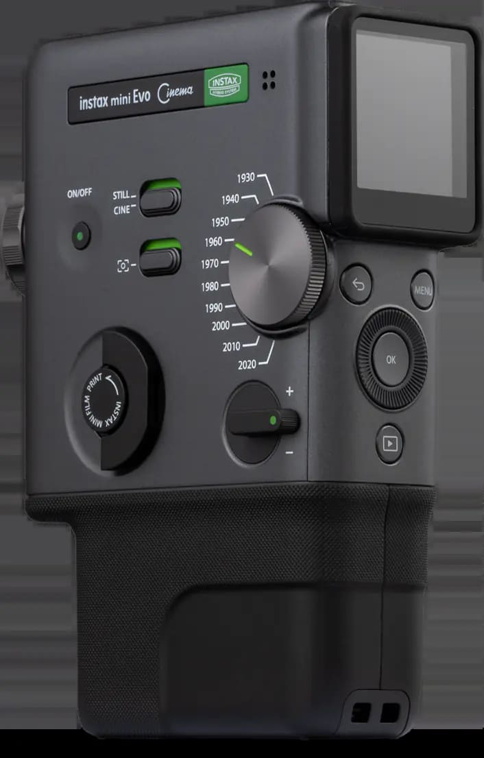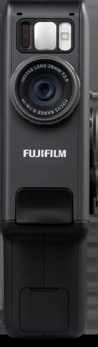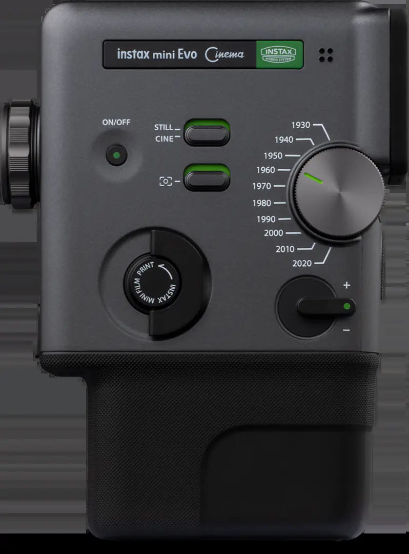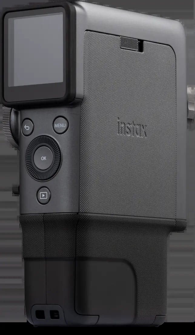 機身採用黑灰配色的經典高質感設計,搭載直立式握把,設計靈感來自 1965 年問世、讓家庭錄影普及化的 FUJICA Single-8 8mm 攝影系統。年代效果轉盤轉動時會發出清脆回饋聲,而模擬手動捲片感受的列印搖桿,更增添濃厚類比魅力,讓拍攝與列印過程充滿儀式感。