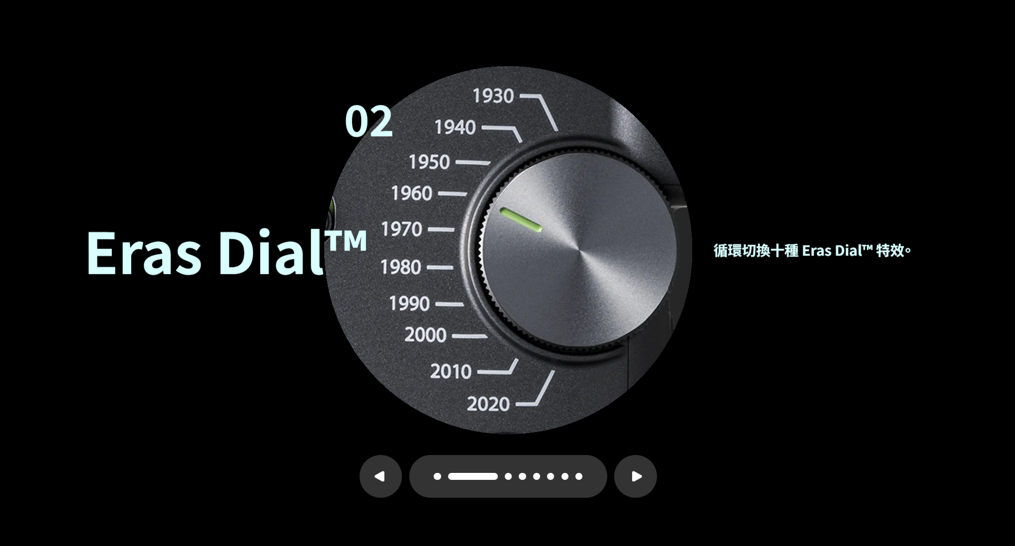 內建 10 種年代效果濾鏡,包含模擬 8mm 攝影機風格的「1960」效果,以及呈現彩色 CRT 電視質感的「1970」效果。除了影像風格,特效中亦加入雜訊、磁帶抖動等細節,忠實重現各年代氛圍。每種效果皆提供 10 階段的強度調整,總計可創造 100 種影像表現。音訊同樣套用年代效果處理,部分效果在拍攝時還會播放如底片轉動聲等懷舊音效,營造彷彿回到過去的沉浸式體驗。